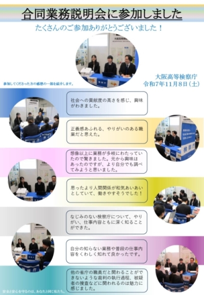 11月8日に実施された民間企業も多数出展する合同業務説明会に、大阪高等検察庁ブースとして出展しました!