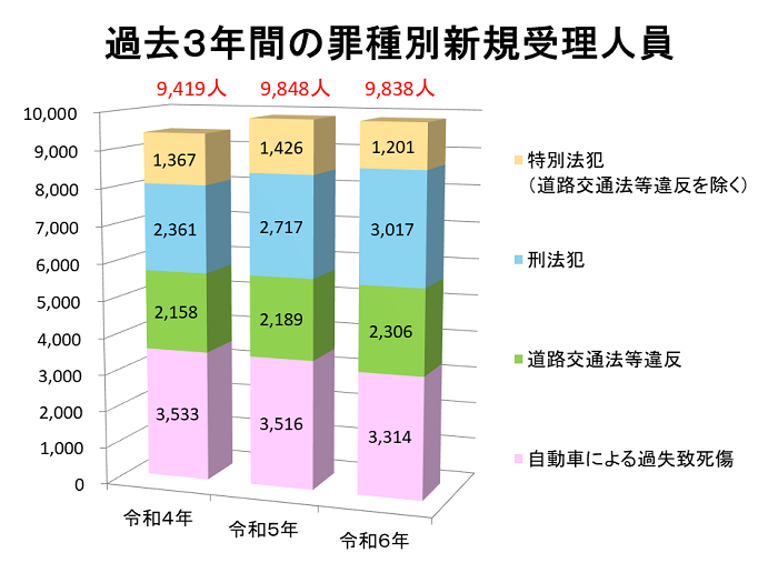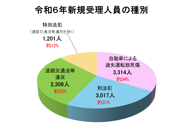 受理人員の総数は9,838人となっており、そのうち刑法犯は、3,017人(約31%)です。