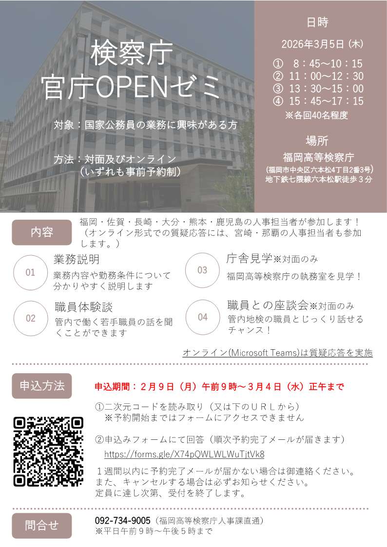 熊本地方検察庁任期付職員募集のお知らせについて(R8.2.2掲載)