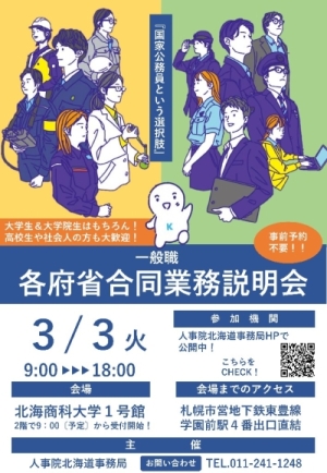国家公務員採用一般職試験(大卒程度)受験予定の学生等を対象として、人事院北海道事務局が主催する2025年度一般職各府省合同業務説明会に、札幌高等検察庁が参加します。