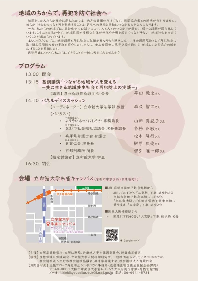 近畿ブロック再犯防止シンポジウム事務局(近畿矯正管区更生支援企画課内)